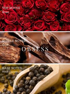 The scent opens with romantic red roses, melts into a deep, smoky oud heart, and ends with a spicy touch of black pepper.